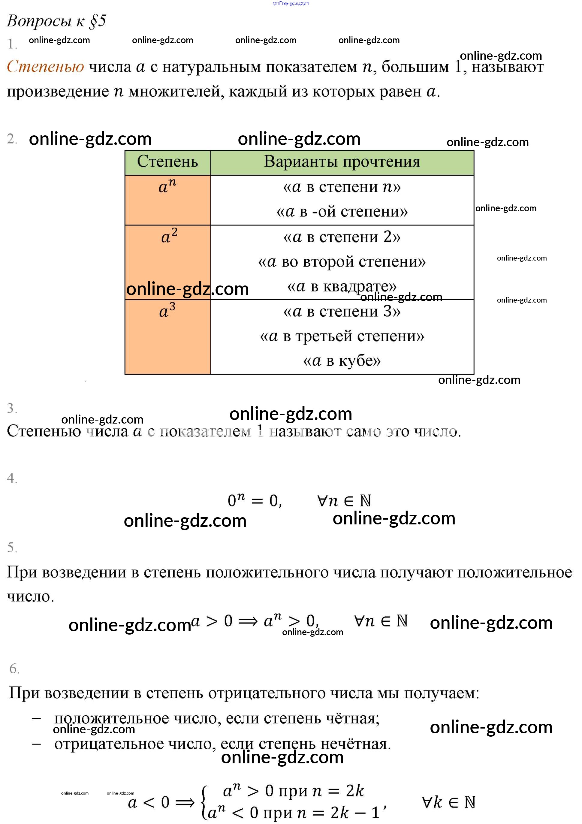 Готовые домашние задания по Алгебре за 7 класс Учебник Мерзляк, Полонский Алгоритм успеха Базовый уровень 2016 - Вопросы к параграфам 5