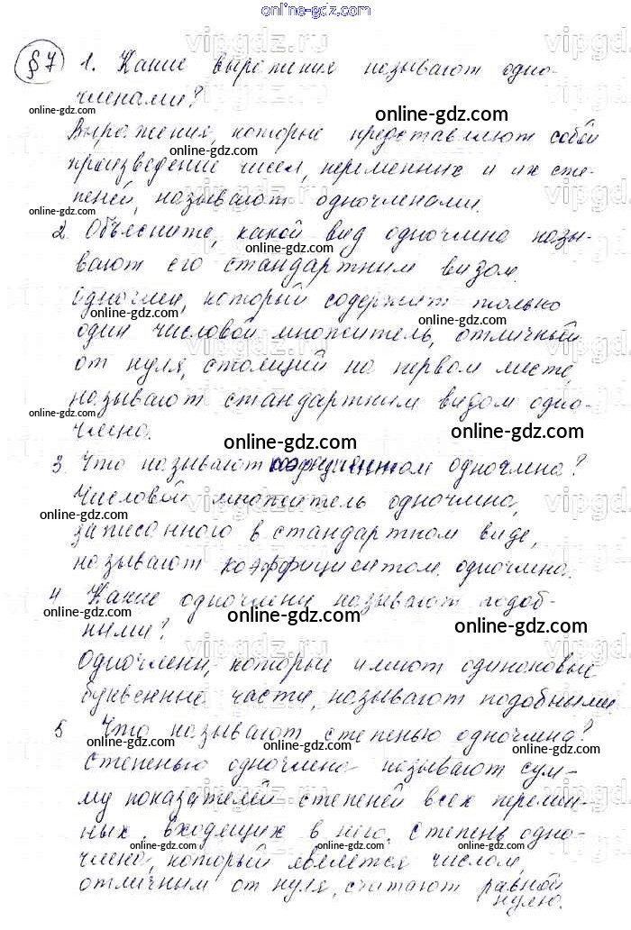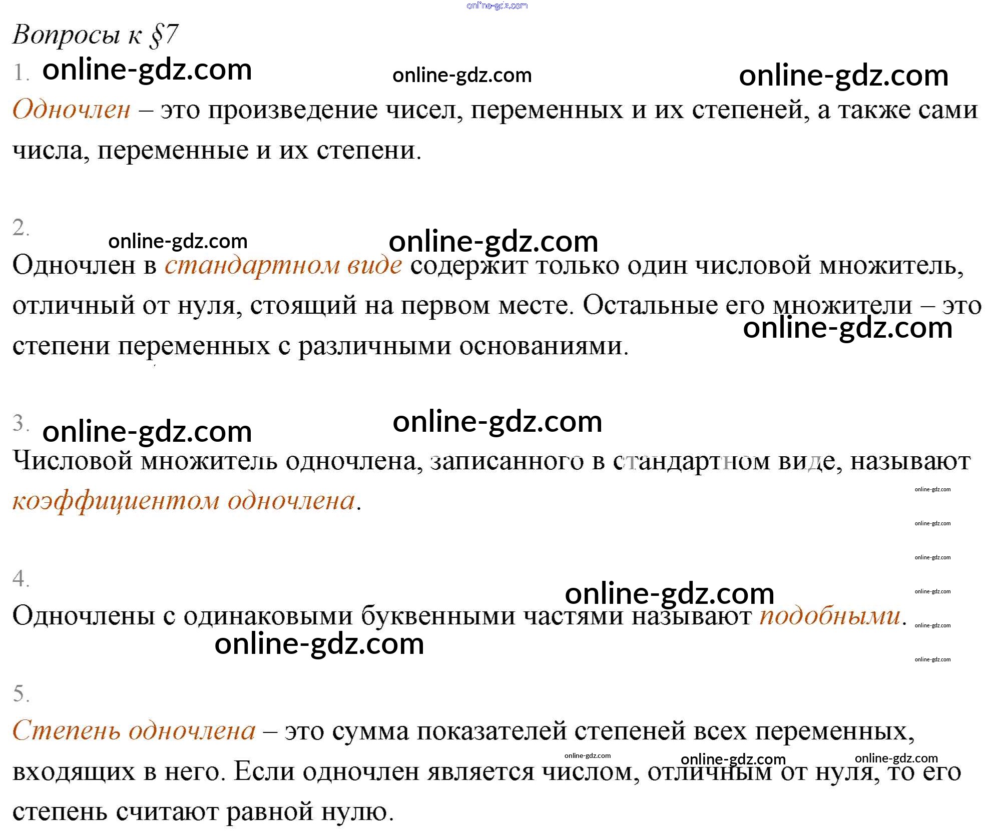 Готовые домашние задания по Алгебре за 7 класс Учебник Мерзляк, Полонский Алгоритм успеха Базовый уровень 2016 - Вопросы к параграфам 7