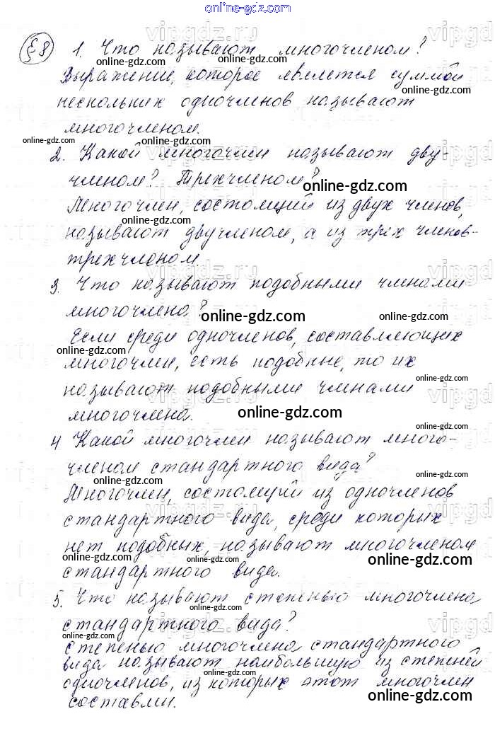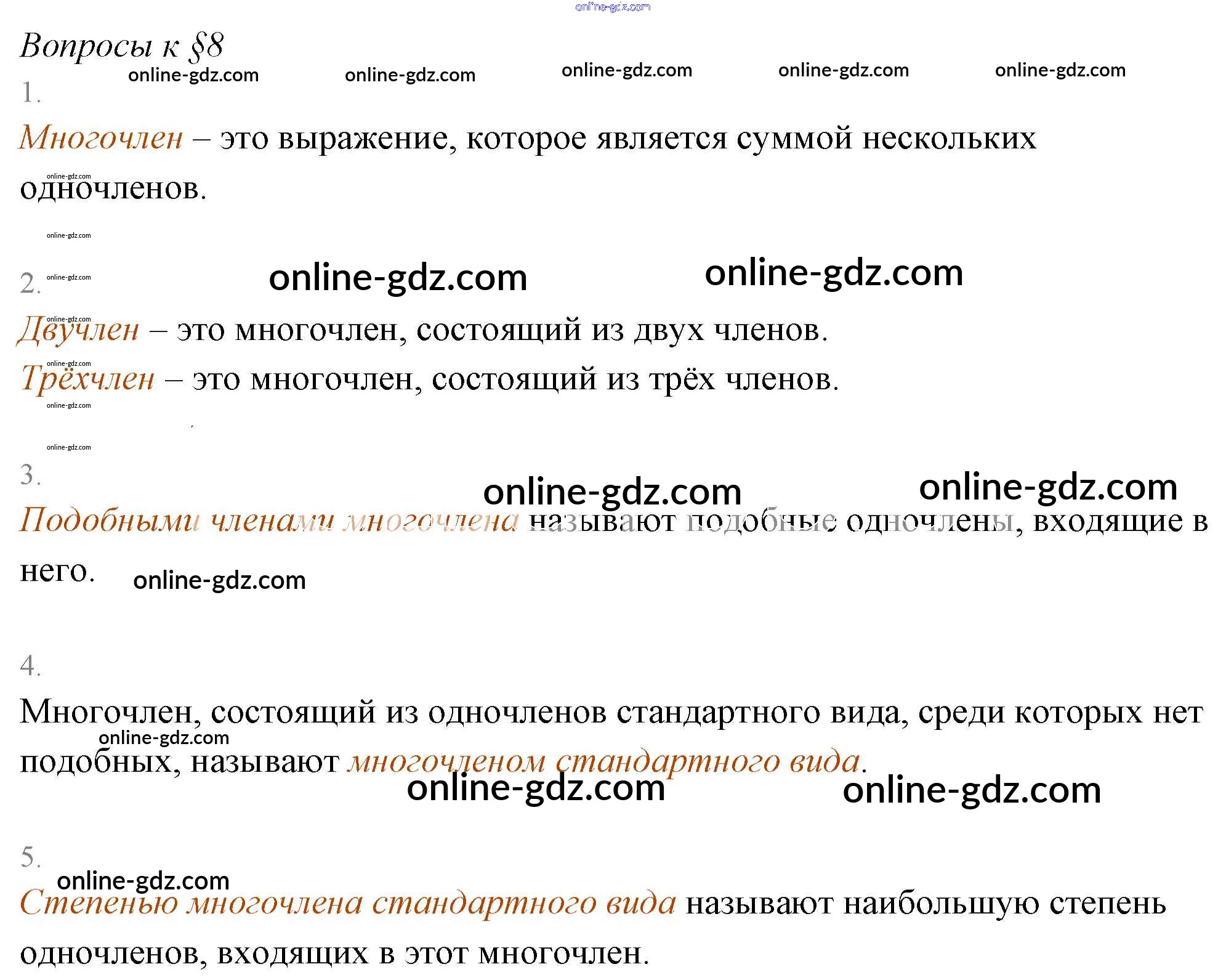 Готовые домашние задания по Алгебре за 7 класс Учебник Мерзляк, Полонский Алгоритм успеха Базовый уровень 2016 - Вопросы к параграфам 8