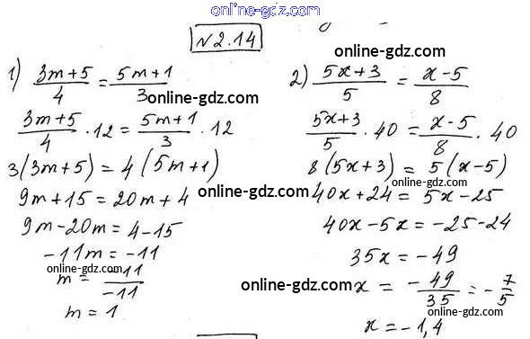Готовые домашние задания по Алгебре за 7 класс Учебник Мерзляк, Поляков Алгоритм успеха Углубленный уровень 2019 - §2. Линейное уравнение с одной переменной 2.14