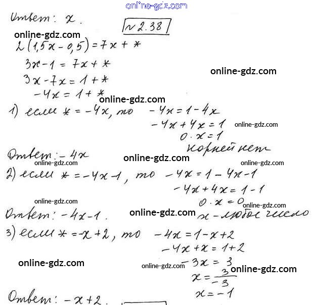Готовые домашние задания по Алгебре за 7 класс Учебник Мерзляк, Поляков Алгоритм успеха Углубленный уровень 2019 - §2. Линейное уравнение с одной переменной 2.38