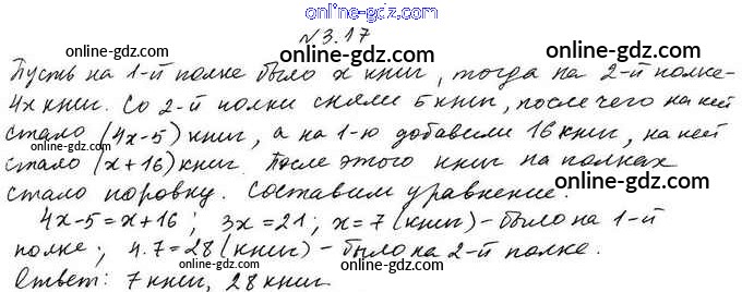 Готовые домашние задания по Алгебре за 7 класс Учебник Мерзляк, Поляков Алгоритм успеха Углубленный уровень 2019 - §3. Решение задач с помощью уравнений 3.17