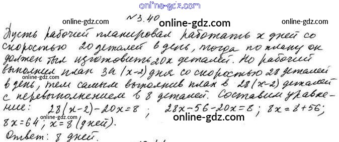 Готовые домашние задания по Алгебре за 7 класс Учебник Мерзляк, Поляков Алгоритм успеха Углубленный уровень 2019 - §3. Решение задач с помощью уравнений 3.40