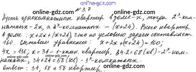 Готовые домашние задания по Алгебре за 7 класс Учебник Мерзляк, Поляков Алгоритм успеха Углубленный уровень 2019 - §3. Решение задач с помощью уравнений 3.7