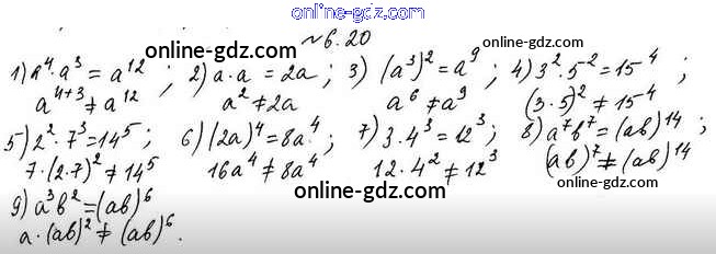 Готовые домашние задания по Алгебре за 7 класс Учебник Мерзляк, Поляков Алгоритм успеха Углубленный уровень 2019 - §6. Свойства степени с натуральным показателем 6.20