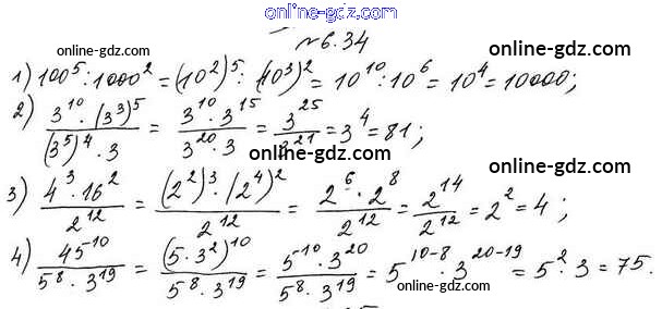 Готовые домашние задания по Алгебре за 7 класс Учебник Мерзляк, Поляков Алгоритм успеха Углубленный уровень 2019 - §6. Свойства степени с натуральным показателем 6.34