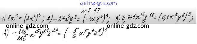 Готовые домашние задания по Алгебре за 7 класс Учебник Мерзляк, Поляков Алгоритм успеха Углубленный уровень 2019 - §7. Одночлены 7.17