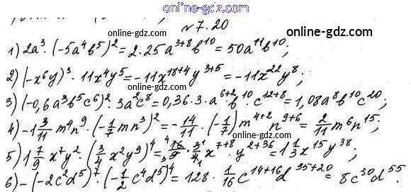 Готовые домашние задания по Алгебре за 7 класс Учебник Мерзляк, Поляков Алгоритм успеха Углубленный уровень 2019 - §7. Одночлены 7.20