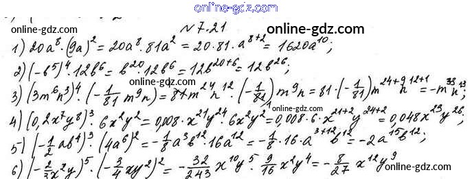 Готовые домашние задания по Алгебре за 7 класс Учебник Мерзляк, Поляков Алгоритм успеха Углубленный уровень 2019 - §7. Одночлены 7.21