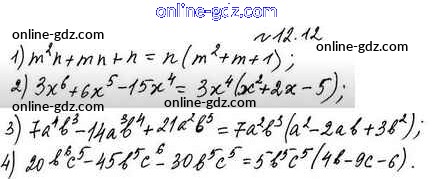 Готовые домашние задания по Алгебре за 7 класс Учебник Мерзляк, Поляков Алгоритм успеха Углубленный уровень 2019 - §12. Разложение многочленов на множители. Вынесение общего множителя за скобки 12.12