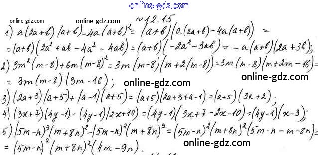 Готовые домашние задания по Алгебре за 7 класс Учебник Мерзляк, Поляков Алгоритм успеха Углубленный уровень 2019 - §12. Разложение многочленов на множители. Вынесение общего множителя за скобки 12.15
