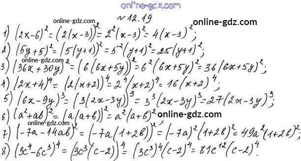 Готовые домашние задания по Алгебре за 7 класс Учебник Мерзляк, Поляков Алгоритм успеха Углубленный уровень 2019 - §12. Разложение многочленов на множители. Вынесение общего множителя за скобки 12.19