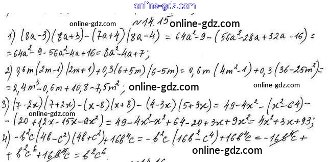 Готовые домашние задания по Алгебре за 7 класс Учебник Мерзляк, Поляков Алгоритм успеха Углубленный уровень 2019 - §14. Произведение разности и суммы двух выражений 14.15