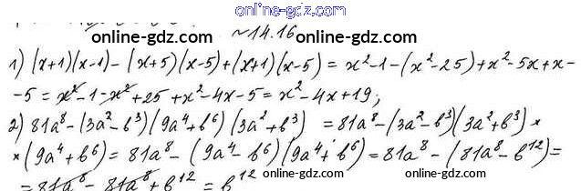 Готовые домашние задания по Алгебре за 7 класс Учебник Мерзляк, Поляков Алгоритм успеха Углубленный уровень 2019 - §14. Произведение разности и суммы двух выражений 14.16