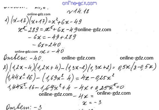Готовые домашние задания по Алгебре за 7 класс Учебник Мерзляк, Поляков Алгоритм успеха Углубленный уровень 2019 - §14. Произведение разности и суммы двух выражений 14.18