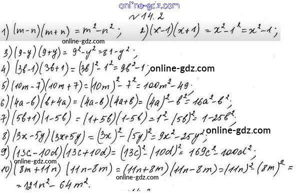 Готовые домашние задания по Алгебре за 7 класс Учебник Мерзляк, Поляков Алгоритм успеха Углубленный уровень 2019 - §14. Произведение разности и суммы двух выражений 14.2