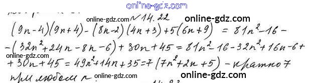 Готовые домашние задания по Алгебре за 7 класс Учебник Мерзляк, Поляков Алгоритм успеха Углубленный уровень 2019 - §14. Произведение разности и суммы двух выражений 14.22