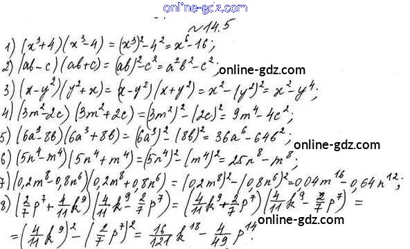 Готовые домашние задания по Алгебре за 7 класс Учебник Мерзляк, Поляков Алгоритм успеха Углубленный уровень 2019 - §14. Произведение разности и суммы двух выражений 14.5