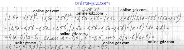 Готовые домашние задания по Алгебре за 7 класс Учебник Мерзляк, Поляков Алгоритм успеха Углубленный уровень 2019 - §15. Разность квадратов двух выражений 15.11