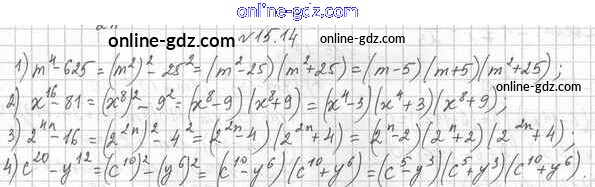 Готовые домашние задания по Алгебре за 7 класс Учебник Мерзляк, Поляков Алгоритм успеха Углубленный уровень 2019 - §15. Разность квадратов двух выражений 15.14