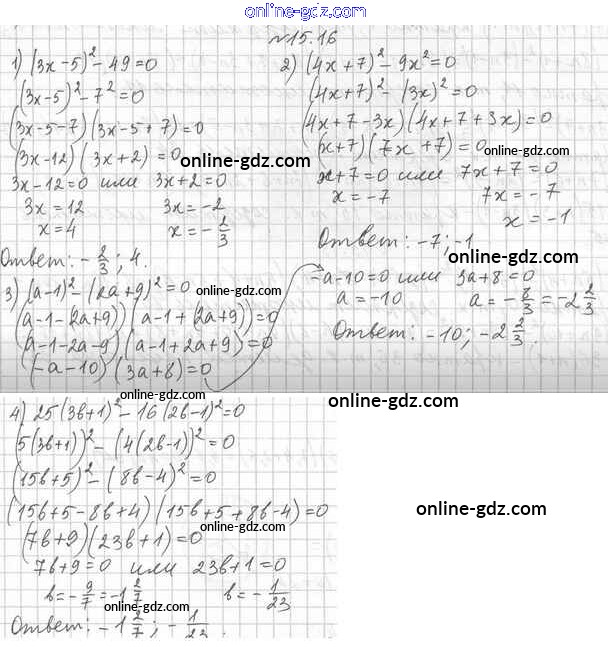 Готовые домашние задания по Алгебре за 7 класс Учебник Мерзляк, Поляков Алгоритм успеха Углубленный уровень 2019 - §15. Разность квадратов двух выражений 15.16