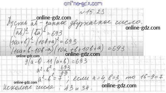 Готовые домашние задания по Алгебре за 7 класс Учебник Мерзляк, Поляков Алгоритм успеха Углубленный уровень 2019 - §15. Разность квадратов двух выражений 15.23