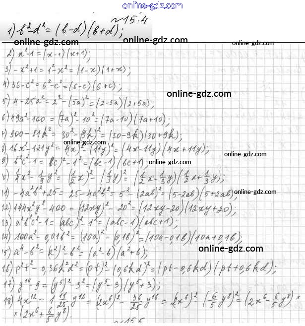 Готовые домашние задания по Алгебре за 7 класс Учебник Мерзляк, Поляков Алгоритм успеха Углубленный уровень 2019 - §15. Разность квадратов двух выражений 15.4