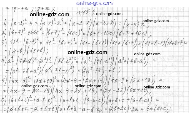Готовые домашние задания по Алгебре за 7 класс Учебник Мерзляк, Поляков Алгоритм успеха Углубленный уровень 2019 - §15. Разность квадратов двух выражений 15.9