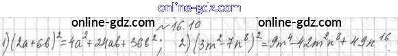 Готовые домашние задания по Алгебре за 7 класс Учебник Мерзляк, Поляков Алгоритм успеха Углубленный уровень 2019 - §16. Квадрат суммы и квадрат разности двух выражений. Квадрат суммы нескольких выражений 16.10