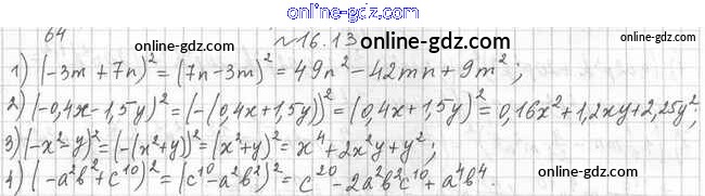 Готовые домашние задания по Алгебре за 7 класс Учебник Мерзляк, Поляков Алгоритм успеха Углубленный уровень 2019 - §16. Квадрат суммы и квадрат разности двух выражений. Квадрат суммы нескольких выражений 16.13