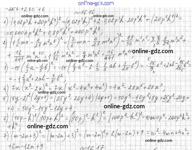 Готовые домашние задания по Алгебре за 7 класс Учебник Мерзляк, Поляков Алгоритм успеха Углубленный уровень 2019 - §16. Квадрат суммы и квадрат разности двух выражений. Квадрат суммы нескольких выражений 16.16