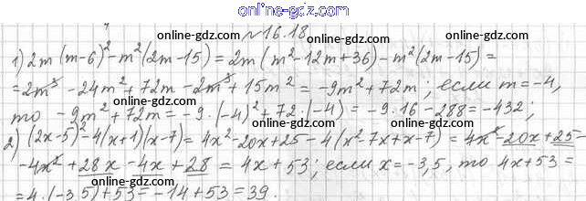 Готовые домашние задания по Алгебре за 7 класс Учебник Мерзляк, Поляков Алгоритм успеха Углубленный уровень 2019 - §16. Квадрат суммы и квадрат разности двух выражений. Квадрат суммы нескольких выражений 16.18