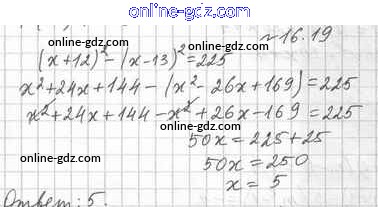 Готовые домашние задания по Алгебре за 7 класс Учебник Мерзляк, Поляков Алгоритм успеха Углубленный уровень 2019 - §16. Квадрат суммы и квадрат разности двух выражений. Квадрат суммы нескольких выражений 16.19