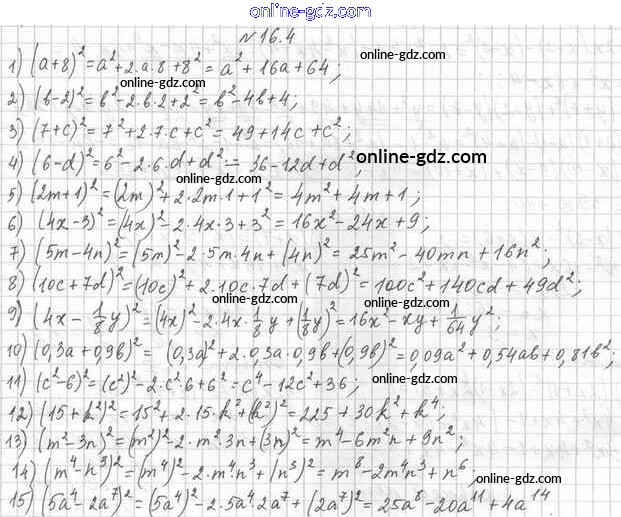 Готовые домашние задания по Алгебре за 7 класс Учебник Мерзляк, Поляков Алгоритм успеха Углубленный уровень 2019 - §16. Квадрат суммы и квадрат разности двух выражений. Квадрат суммы нескольких выражений 16.4
