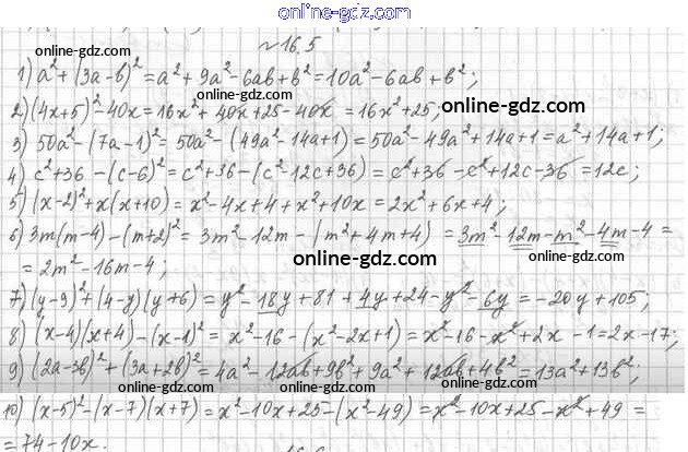 Готовые домашние задания по Алгебре за 7 класс Учебник Мерзляк, Поляков Алгоритм успеха Углубленный уровень 2019 - §16. Квадрат суммы и квадрат разности двух выражений. Квадрат суммы нескольких выражений 16.5