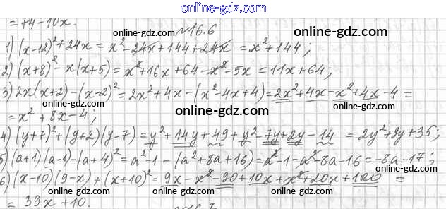 Готовые домашние задания по Алгебре за 7 класс Учебник Мерзляк, Поляков Алгоритм успеха Углубленный уровень 2019 - §16. Квадрат суммы и квадрат разности двух выражений. Квадрат суммы нескольких выражений 16.6