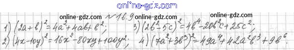 Готовые домашние задания по Алгебре за 7 класс Учебник Мерзляк, Поляков Алгоритм успеха Углубленный уровень 2019 - §16. Квадрат суммы и квадрат разности двух выражений. Квадрат суммы нескольких выражений 16.9