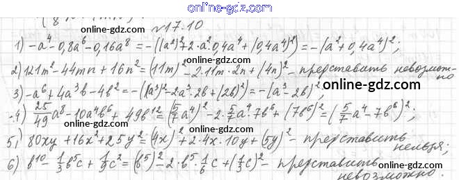 Готовые домашние задания по Алгебре за 7 класс Учебник Мерзляк, Поляков Алгоритм успеха Углубленный уровень 2019 - §17. Преобразование многочлена в квадрат суммы или разности двух выражений либо в квадрат суммы нескольких выражений 17.10