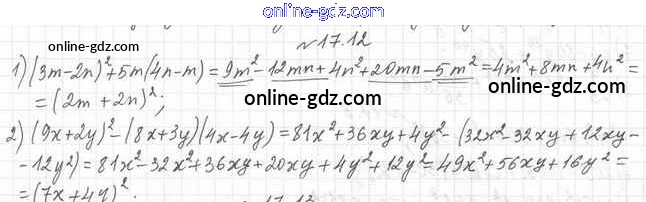 Готовые домашние задания по Алгебре за 7 класс Учебник Мерзляк, Поляков Алгоритм успеха Углубленный уровень 2019 - §17. Преобразование многочлена в квадрат суммы или разности двух выражений либо в квадрат суммы нескольких выражений 17.12