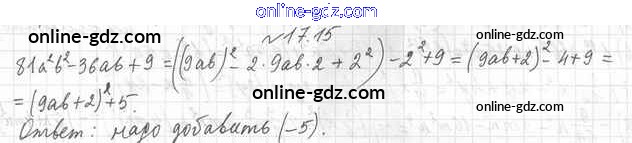 Готовые домашние задания по Алгебре за 7 класс Учебник Мерзляк, Поляков Алгоритм успеха Углубленный уровень 2019 - §17. Преобразование многочлена в квадрат суммы или разности двух выражений либо в квадрат суммы нескольких выражений 17.15