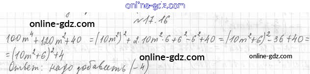 Готовые домашние задания по Алгебре за 7 класс Учебник Мерзляк, Поляков Алгоритм успеха Углубленный уровень 2019 - §17. Преобразование многочлена в квадрат суммы или разности двух выражений либо в квадрат суммы нескольких выражений 17.16