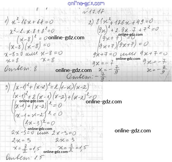 Готовые домашние задания по Алгебре за 7 класс Учебник Мерзляк, Поляков Алгоритм успеха Углубленный уровень 2019 - §17. Преобразование многочлена в квадрат суммы или разности двух выражений либо в квадрат суммы нескольких выражений 17.17