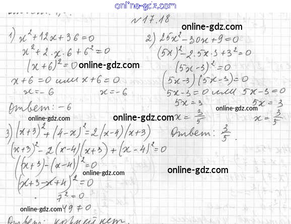 Готовые домашние задания по Алгебре за 7 класс Учебник Мерзляк, Поляков Алгоритм успеха Углубленный уровень 2019 - §17. Преобразование многочлена в квадрат суммы или разности двух выражений либо в квадрат суммы нескольких выражений 17.18