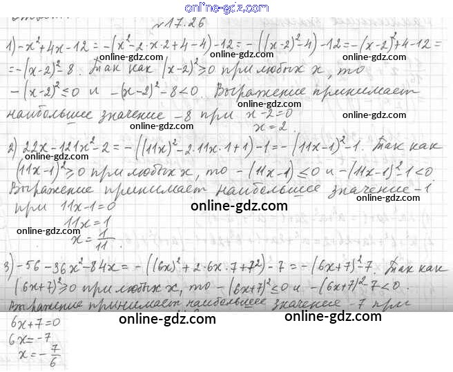 Готовые домашние задания по Алгебре за 7 класс Учебник Мерзляк, Поляков Алгоритм успеха Углубленный уровень 2019 - §17. Преобразование многочлена в квадрат суммы или разности двух выражений либо в квадрат суммы нескольких выражений 17.26