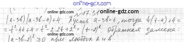 Готовые домашние задания по Алгебре за 7 класс Учебник Мерзляк, Поляков Алгоритм успеха Углубленный уровень 2019 - §17. Преобразование многочлена в квадрат суммы или разности двух выражений либо в квадрат суммы нескольких выражений 17.31