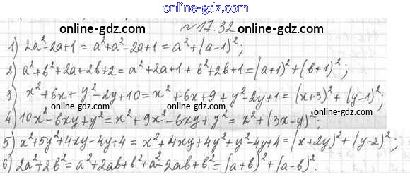 Готовые домашние задания по Алгебре за 7 класс Учебник Мерзляк, Поляков Алгоритм успеха Углубленный уровень 2019 - §17. Преобразование многочлена в квадрат суммы или разности двух выражений либо в квадрат суммы нескольких выражений 17.32