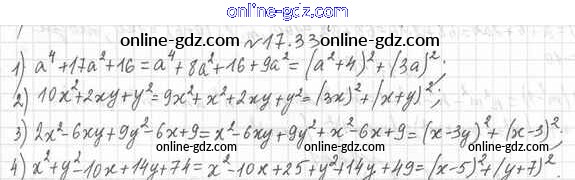 Готовые домашние задания по Алгебре за 7 класс Учебник Мерзляк, Поляков Алгоритм успеха Углубленный уровень 2019 - §17. Преобразование многочлена в квадрат суммы или разности двух выражений либо в квадрат суммы нескольких выражений 17.33