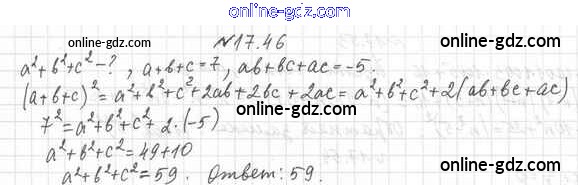 Готовые домашние задания по Алгебре за 7 класс Учебник Мерзляк, Поляков Алгоритм успеха Углубленный уровень 2019 - §17. Преобразование многочлена в квадрат суммы или разности двух выражений либо в квадрат суммы нескольких выражений 17.46