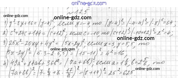 Готовые домашние задания по Алгебре за 7 класс Учебник Мерзляк, Поляков Алгоритм успеха Углубленный уровень 2019 - §17. Преобразование многочлена в квадрат суммы или разности двух выражений либо в квадрат суммы нескольких выражений 17.5