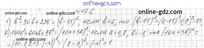 Готовые домашние задания по Алгебре за 7 класс Учебник Мерзляк, Поляков Алгоритм успеха Углубленный уровень 2019 - §17. Преобразование многочлена в квадрат суммы или разности двух выражений либо в квадрат суммы нескольких выражений 17.6